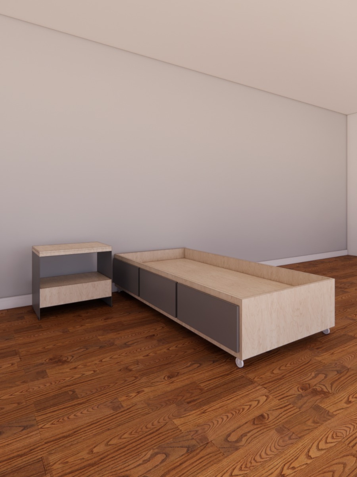 Modelo funcional, harmonizando perfeitamente com a cama.