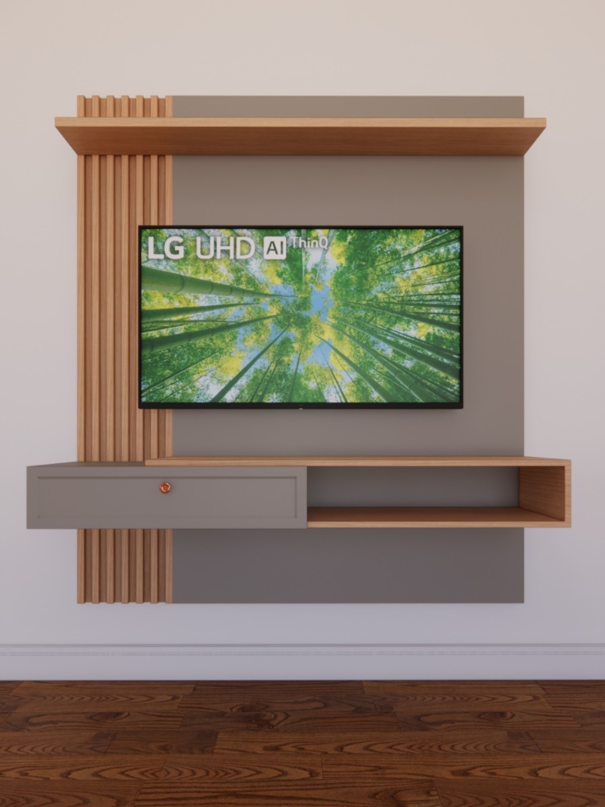 Painel ripado nas cores Louro Freijó e Cinza Sagrado