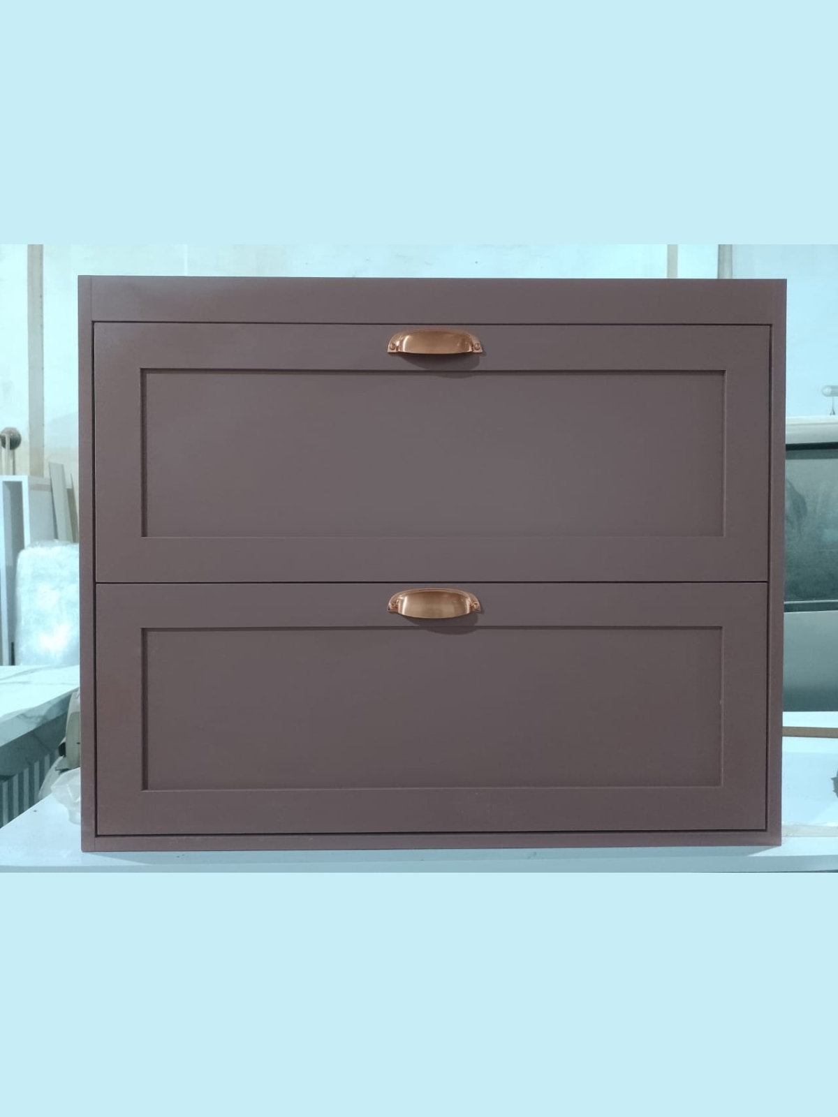 Gabinete para banheiro composto por gaveta e basculante, oferecendo praticidade e ótimo aproveitamento do espaço.
